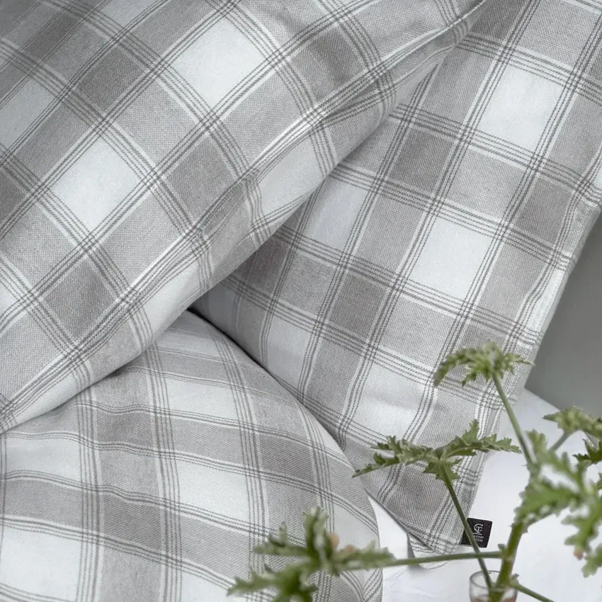 Abisko Flanell Rutigt Ljusgrå Bäddset Enkeltäcke 150x210 Classic Textile