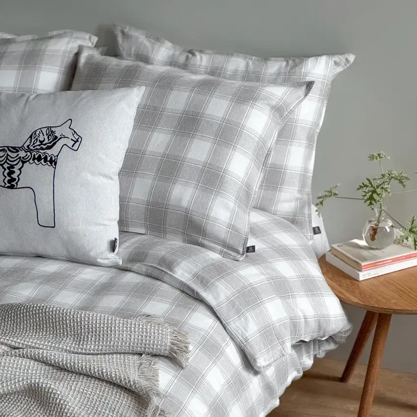 Upptäck det mjuka och varma Abisko Flanell Rutiga bäddsetet i ljusgrått. Tillverkat av 100% ekologiskt infärgad bomull, erbjuder det en behaglig sovupplevelse och hållbar kvalitet. Perfekt för enkelsängar.