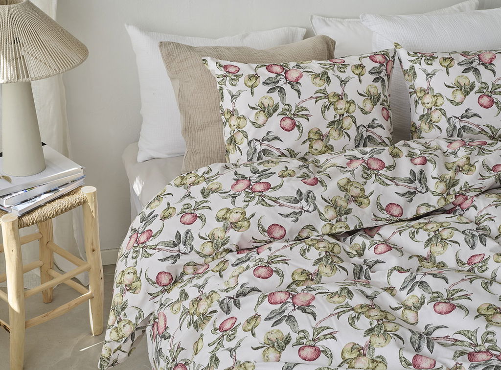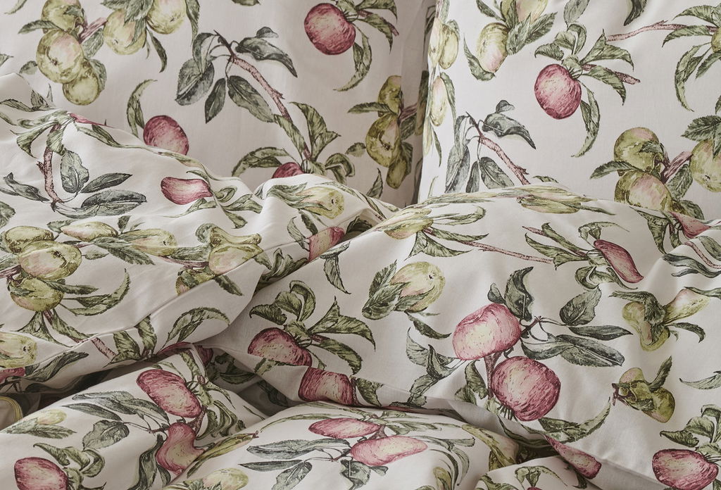 Ett charmigt bäddset i 100 % bomull med vackert äppelmönster i naturliga färger. Äppellunden Multi ger sovrummet en fräsch, lantlig och hemtrevlig känsla som påminner om svenska sommarängar, en perfekt kombination av komfort och tidlös design.