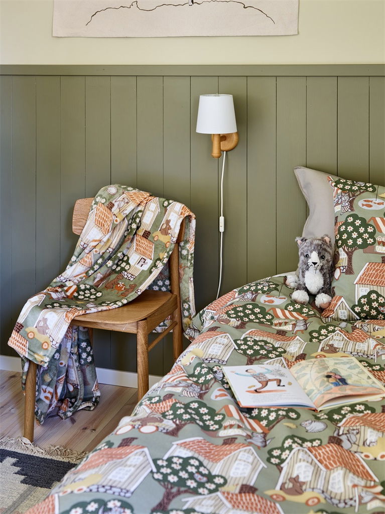 Denna underbara pläd från Redlunds är designad för att skapa en inbjudande och mysig atmosfär i barnrummet. Med sina lekfulla mönster av hus och djur, fångar den fantasin hos både barn och vuxna. Perfekt till det matchande bäddsetet för ett komplett rum. Dess mjuka material är behagligt mot huden, vilket gör den idealisk för både gosiga stunder och lek. OEKO-TEX®-certifieringen säkerställer att pläden är fri från skadliga ämnen.