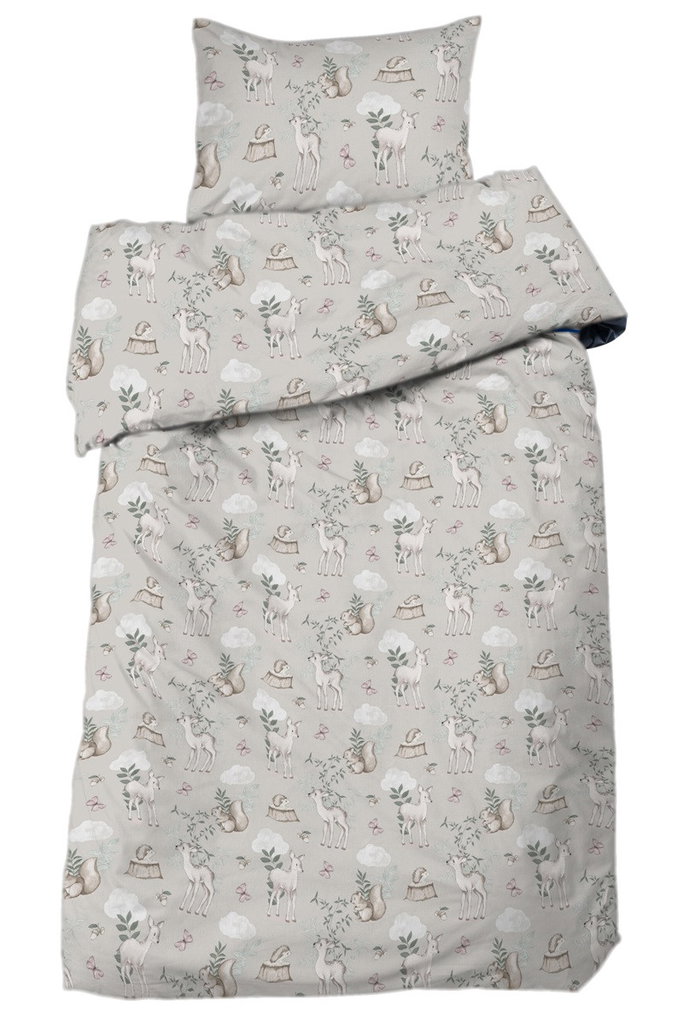 Bambi är tillverkat av 100 % bomull och har en trådtäthet på 120 TC, som gör att sängkläderna blir mjuka att sova i. Påslakanet har hörnhål upptill för en smidig bäddning och örngottet har en kuvertöppning som praktiskt håller kudden på plats hela natten.