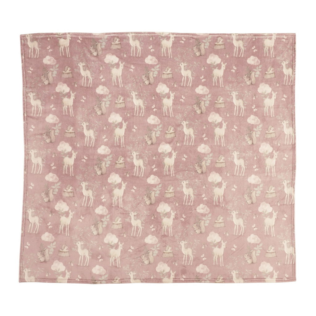 Mysig och mjuk pläd i vacker rosa färg med ett förtjusande mönster av skogliga djur som hjortar, igelkottar och ekorrar bland fjäriljar, moln och träd. Den mjuka fleecekvaliteen i 100% polyester ger en skön och varm känsla, perfekt för mysstunder i soffan eller som ett extra lager i sängen. Pläden är OEKO-TEX® STANDARD 100 och Amfori-certifierad för trygg kvalitet. FinFinns även med matchande kuddfodral och plädar i andra färger för att skapa en komplett och harmonisk look!