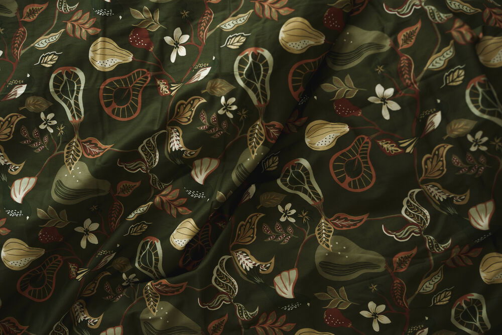 Bandene är ett fint bäddset i en härligt len satinkvalitet. Bäddsetet har ett unikt hantverksmönster av blommor, löv, fåglar och frukter. Mönstret är inspirerat av arkitekten och formgivaren Josef Frank. Bandene är en perfekt start på hösten och en ännu bättre fortsättning in på vintern med dess mysiga och robusta känsla som mönstret skapar. Ett underbart bäddset att gosa in sig i med nära och kära!