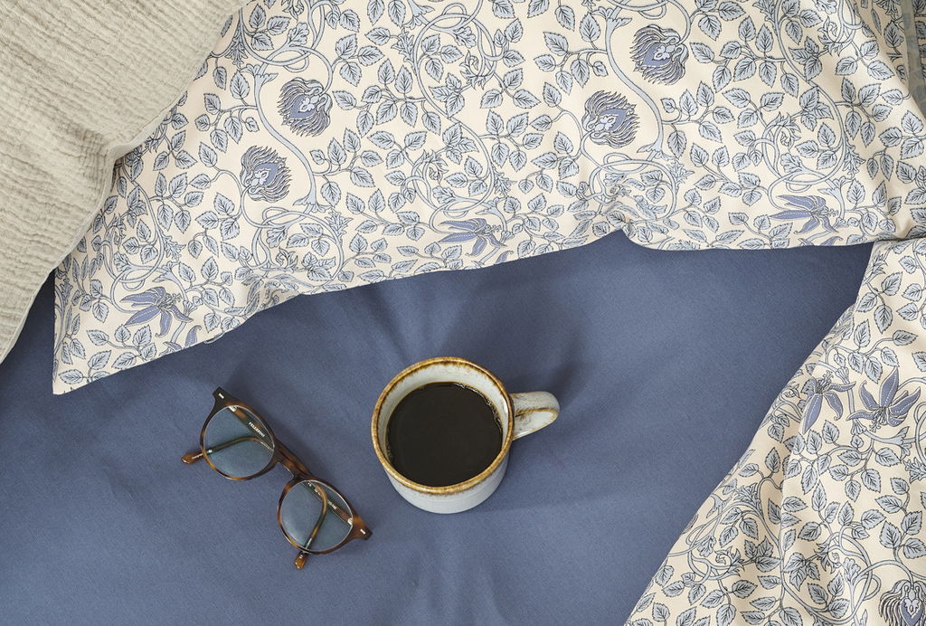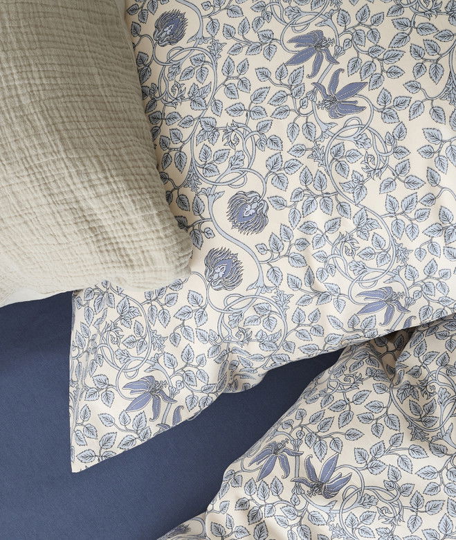 Bontanique blå bäddset i mjuk bomull skapar en stilren sovmiljö med sitt naturnära blommönster i blått och beige. Trådtätheten på 144 TC bringar komfort och behaglig känsla mot huden. Perfekt för att skapa en avslappnande och harmonisk nattsömn!