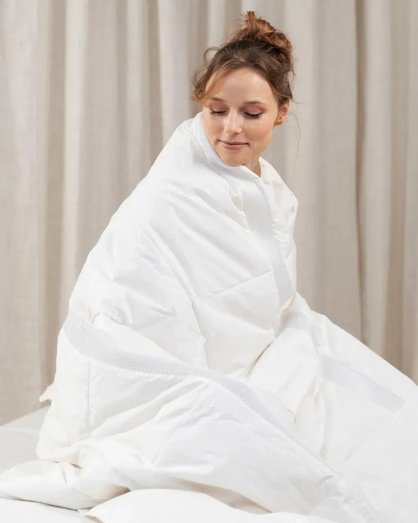 Høie Saga Svalt är det perfekta sommartäcket, fyllt med högkvalitativt dun för optimal svalka och komfort. Det är svanenmärkt och rekommenderas av Asthma Allergy Nordic, vilket gör det idealiskt för allergiker. Används av flera 5-stjärniga hotell, vilket garanterar en lyxig sömnupplevelse.