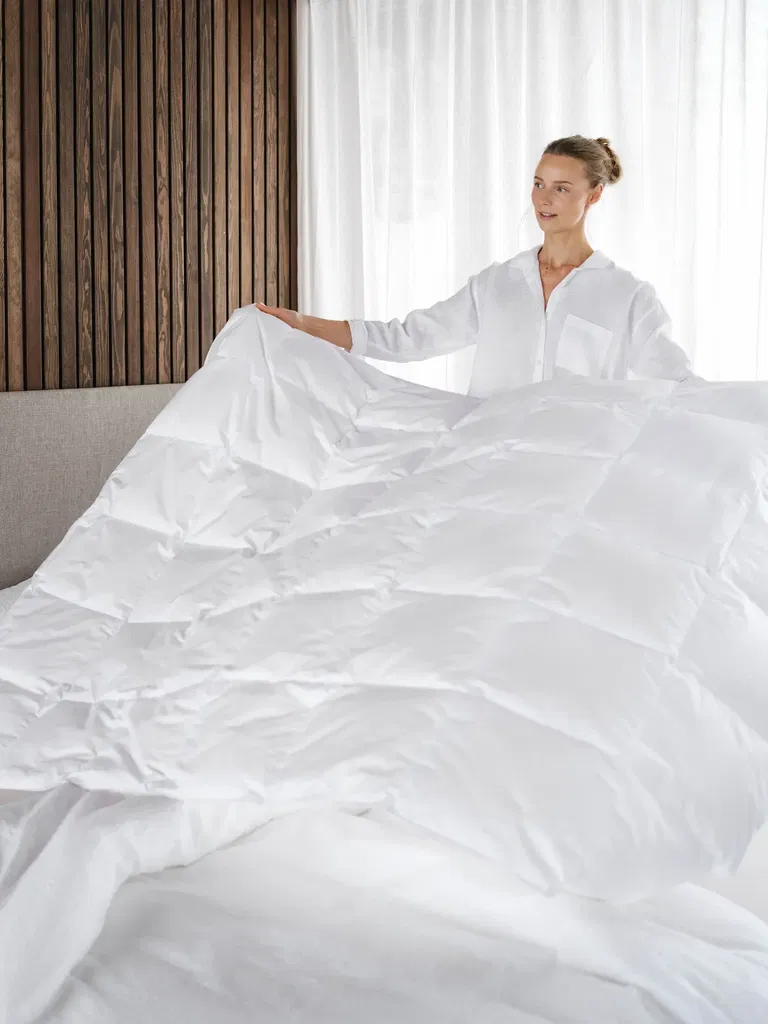 Høie Saga Svalt är det perfekta sommartäcket, fyllt med högkvalitativt dun för optimal svalka och komfort. Det är svanenmärkt och rekommenderas av Asthma Allergy Nordic, vilket gör det idealiskt för allergiker. Används av flera 5-stjärniga hotell, vilket garanterar en lyxig sömnupplevelse.