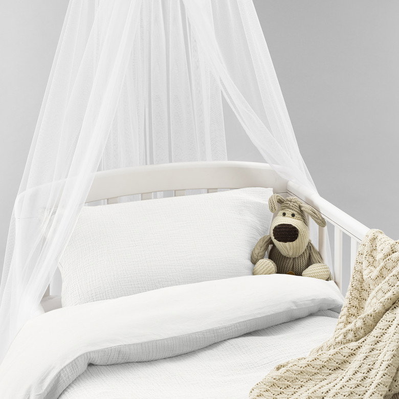 Bädda barnets spjälsäng med detta härligt mjuka och ombonade bäddset från Borganäs of Sweden. Rolling Vit är tillverkat i 100 % bomullspercale med en krinklad framsida och slät baksida, vilket ger en unik och dekorativ struktur samtidigt som tyget känns svalt och skönt mot barnets ömtåliga hud.
