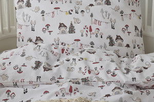 Fingal är ett gulligt bäddset för spjälsäng som ger en riktig höstkänsla till barnsängen. Bäddsetet har ett fint mönster av svampar och svampliknande hus på en vit bottenfärg. Fingal är bäddsetet till den som vill ta in en smakfull touch till barnrummet i höst och passar perfekt till den lilla svampälskaren!