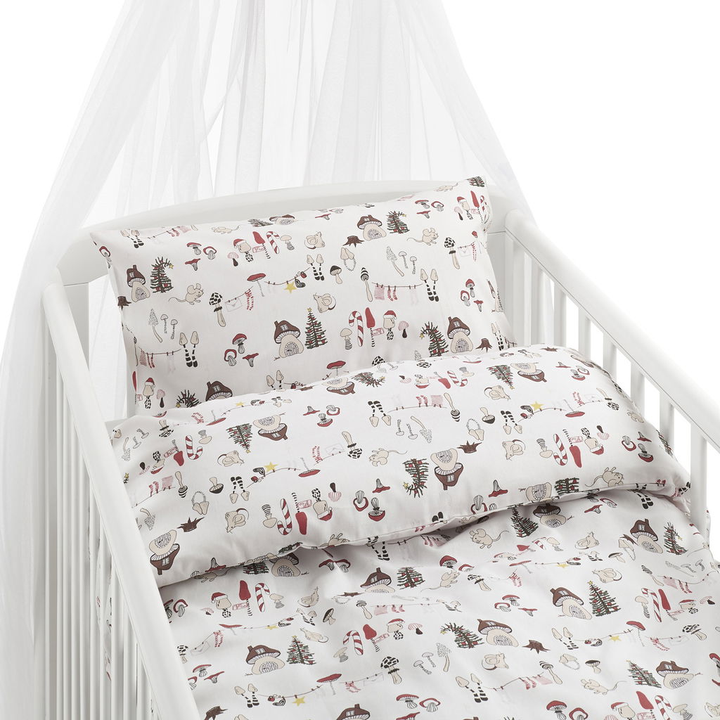 Fingal Svampar Vit Barn Bäddset Spjälsäng 100x130 Borganäs of Sweden