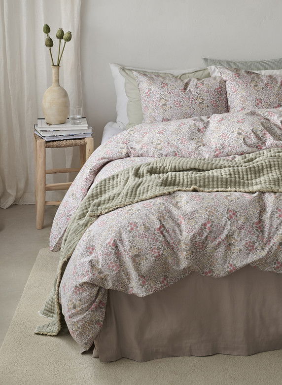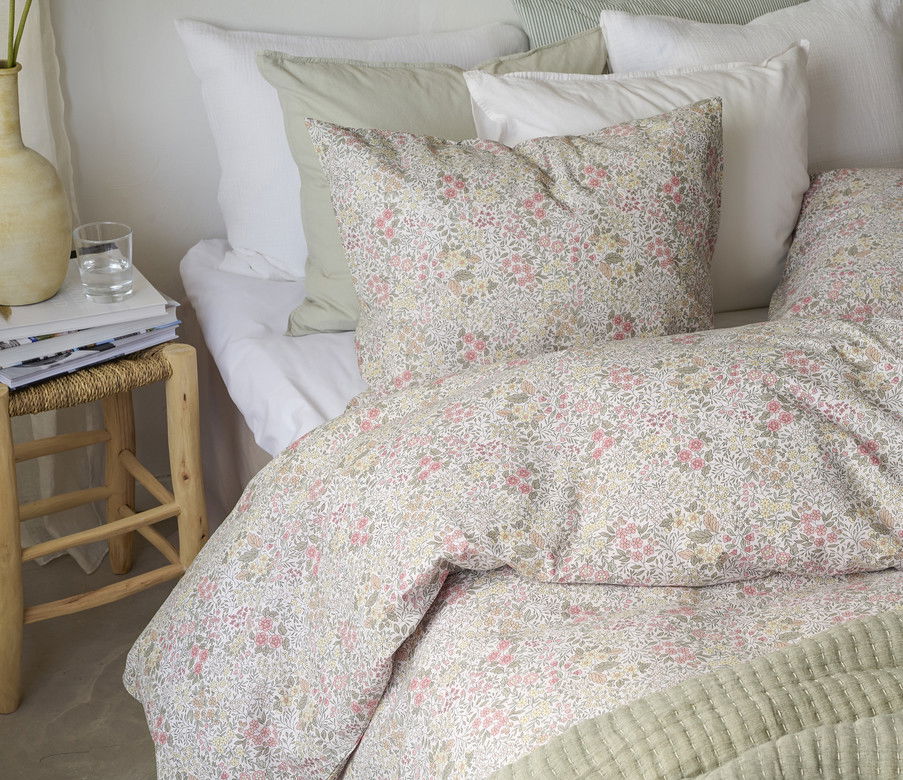 Ett mjukt och behagligt bäddset i 100 % bomull, med romantiskt blommönster i harmoniska färger. Floret Sand förvandlar din säng till en inbjudande plats och ger sovrummet en varm, ombonad och hemtrevlig känsla.