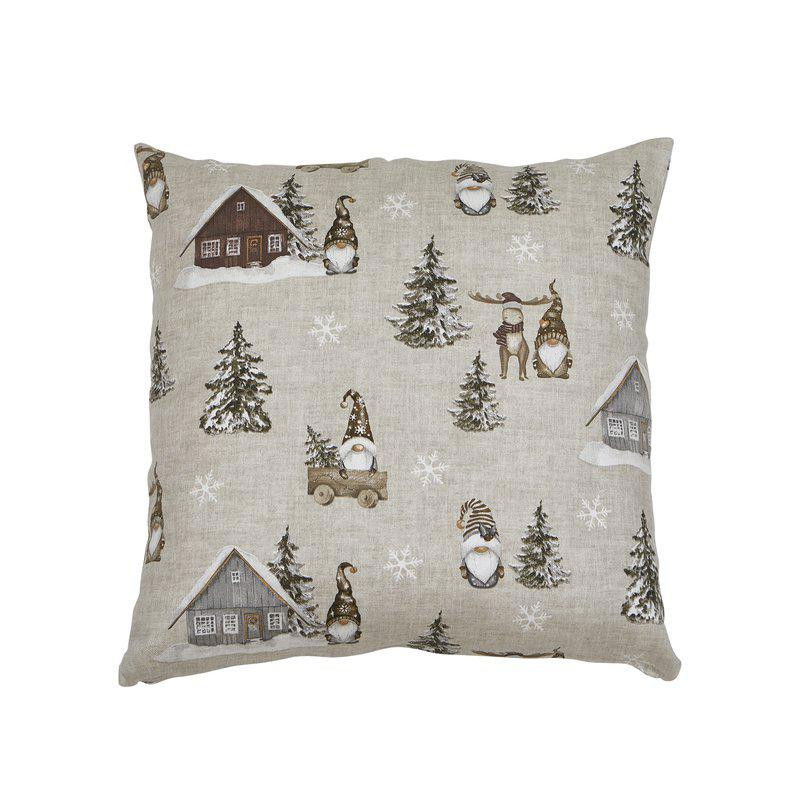 Harald Brun Kuddfodral är ett underbart tillskott till din julinredning. Med sitt söta julmönster, bestående av tomtar och snötäckta granar mot en naturlig bakgrund, skapar det en mysig och inbjudande atmosfär. Det liksidiga mönstret gör att kuddfodralet ser perfekt ut från alla vinklar, och bomullsmaterialet ger en mjuk och hållbar känsla. Oeko-Tex certifieringen garanterar att produkten är tillverkad med omtanke om både människa och miljö.