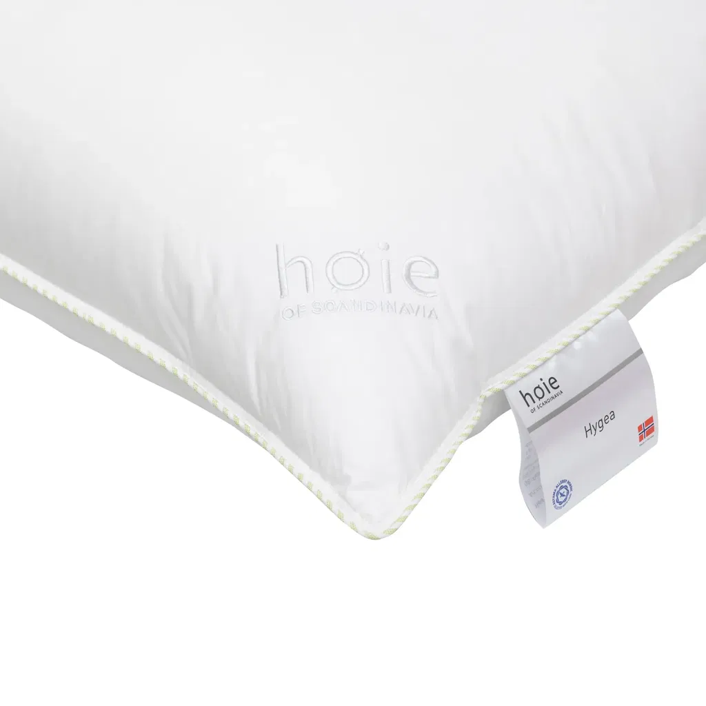 Upplev en förstklassig sovmiljö med Hygea hotellkudde från Höie. Denna norsktillverkade kudde är rekommenderad av Asthma Allergy Nordic tack vare sitt skyddande bomullsöverdrag och hypoallergena fyllning. Perfekt för dem som söker extra stöd vid läsning eller bara älskar att sova högt. Skapa den ultimata hotellkänslan hemma med vår högkvalitativa kudde som även är Oeko-Tex certifierad.