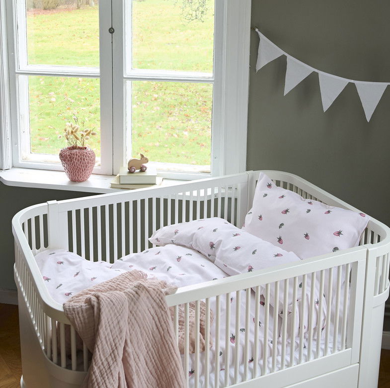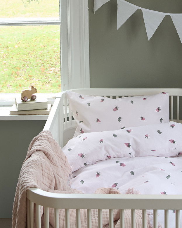 Jordgubbsdröm Rosa Bäddset Spjälsäng 100x130 Borganäs of Sweden