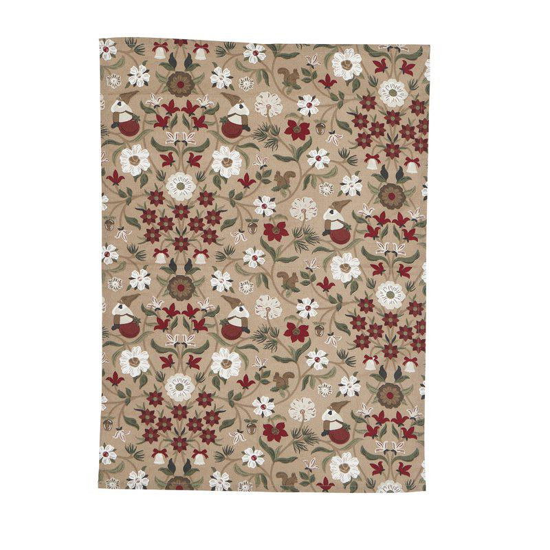 Naturnära kökshandduk i 100% OEKO-TEX-certifierad bomull med detaljerat julmönster av blommor, ekorrar och skogsmotiv. Skapar en varm och stämningsfull atmosfär i köket under julen.