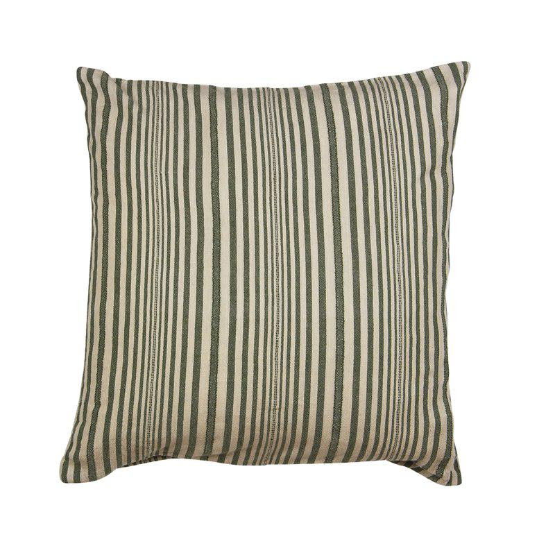 Karin Grön Kuddfodral från Fondaco är en stilren accessoar för ditt hem. Kuddfodralet är tillverkat av 100% bomull och har en garnvävd randdesign i grönt som ger en rustik och inbjudande känsla. Den är ensymtvättad för en mjuk och härlig textur, samtidigt som den behåller sin struktur och hållbarhet över tid.