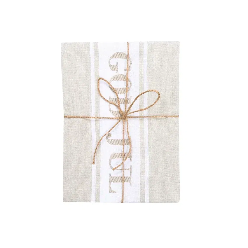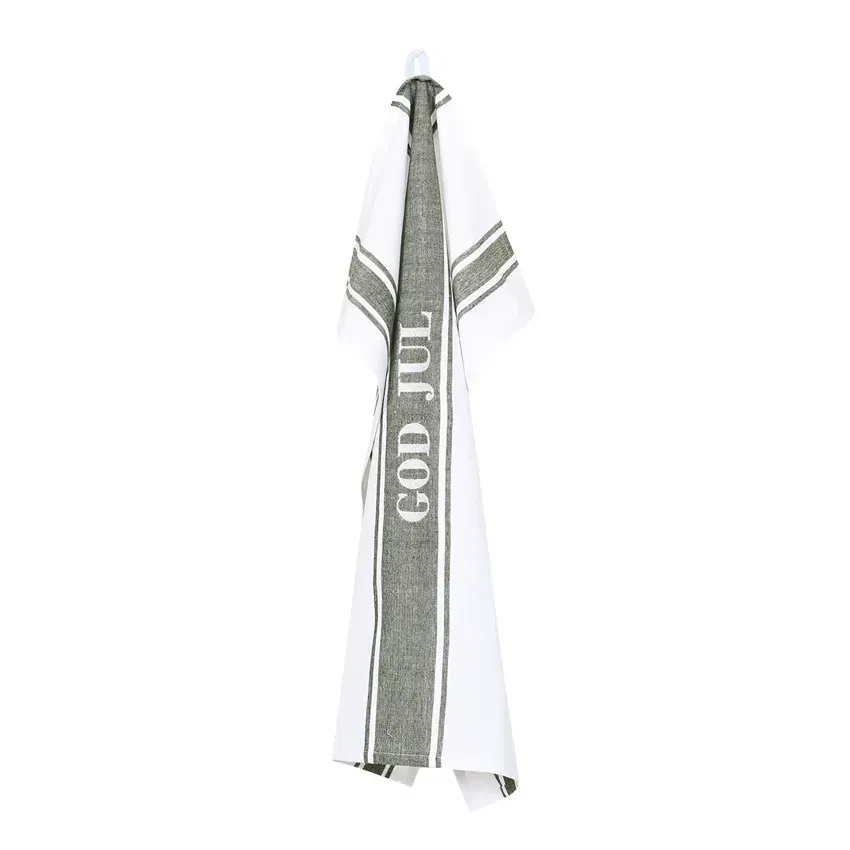 Fira julen med stil med Kökshanddukar från Recycled by Wille. Tillverkade av 99% återvunnet material med broderad texten 'God Jul'. Perfekta för den lantliga inredningen och miljövänliga val. Varje handduk sparar resurser och bidrar till socialt ansvarstagande, certifierade enligt GRS och OEKO-TEX.
