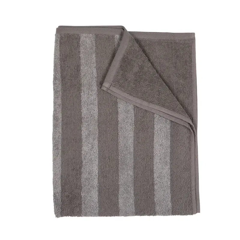 Stilren badrumshandduk från Fonaco i mjuk frotté med elegant randmönster i grå toner. Tillverkad i en blandning av bomull och polyester som ger utmärkt absorberingsförmåga. Oeko-Tex certifierad för en trygg och hållbar produkt som lyfter badrummets inredning.