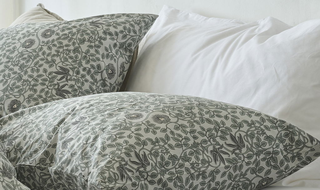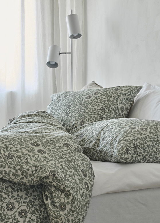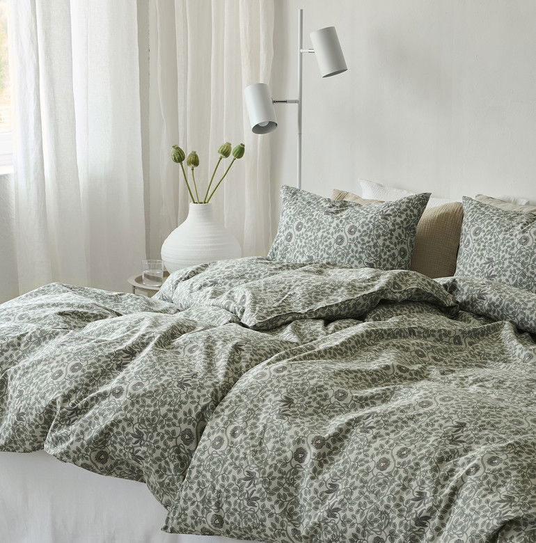 Bontanique Grön Bäddset i mjuk bomull skapar en stilren sovmiljö med sitt naturnära blommönster i blått och beige. Trådtätheten på 144 TC bringar komfort och behaglig känsla mot huden. Perfekt för att skapa en avslappnande och harmonisk nattsömn!