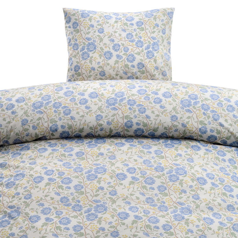 Bella Blå Blommigt Bäddset Enkeltäcke 150x210 Borganäs of Sweden