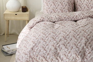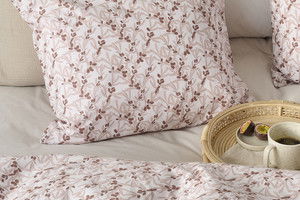 Detta eleganta bäddset erbjuder en mjuk och bekväm sovupplevelse med sitt romantiska botaniska mönster i beige och rosa toner. De delikata bladmotiven ger en naturinspirerad och harmonisk känsla till sovrummet. Tillverkat för komfort och stil, perfekt för att skapa en lugn och tidlös sovmiljö.