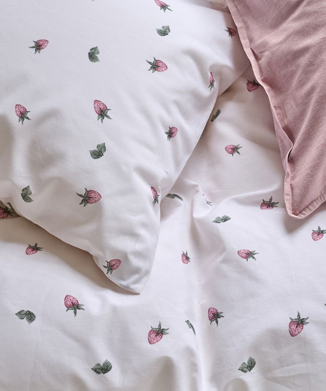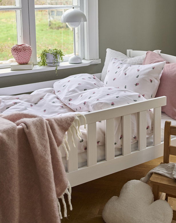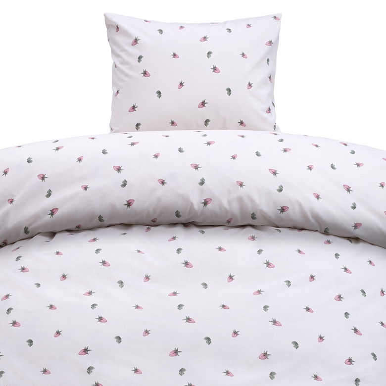 Jordgubbsdröm Rosa Bäddset Enkeltäcke 150x210 Borganäs of Sweden