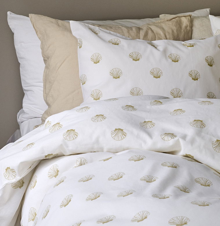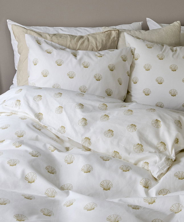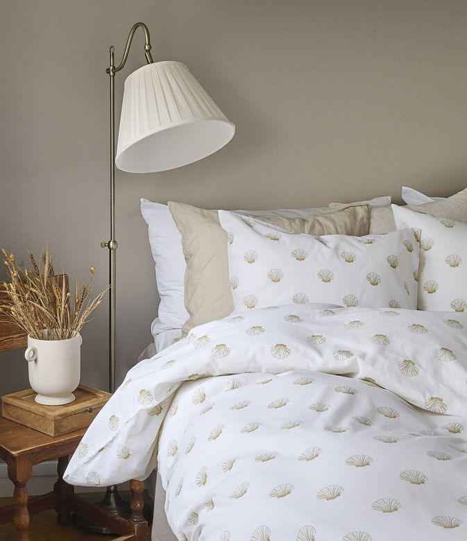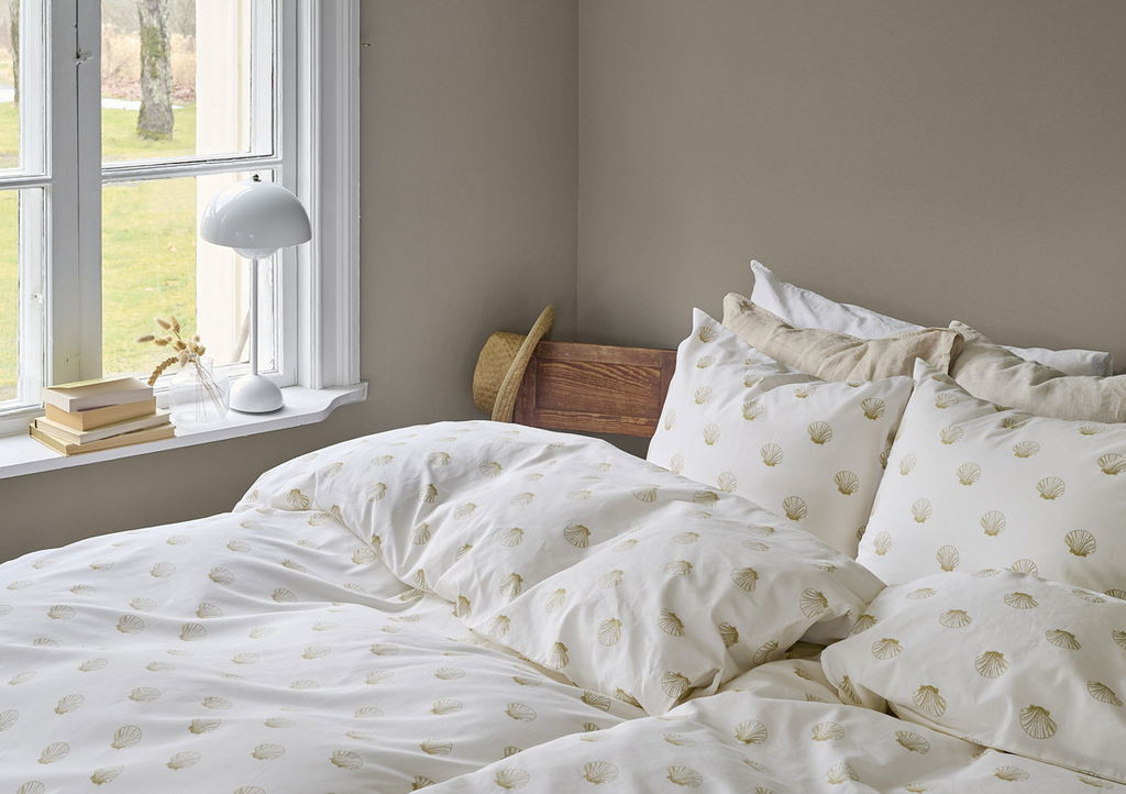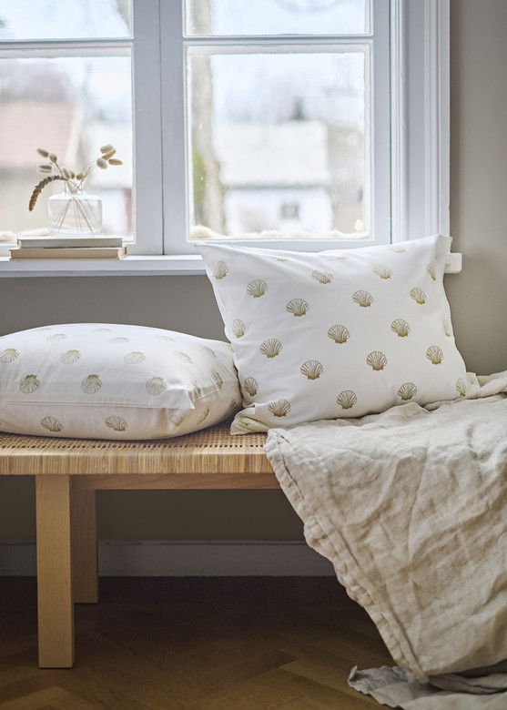 Havsbris Gul Bäddset av Borganäs erbjuder en frisk och stilfull känsla i ditt sovrum. Tillverkad i mjuk bomull med ett elegant skaldesign i ljusgult, kombinerar det komfort och estetik.