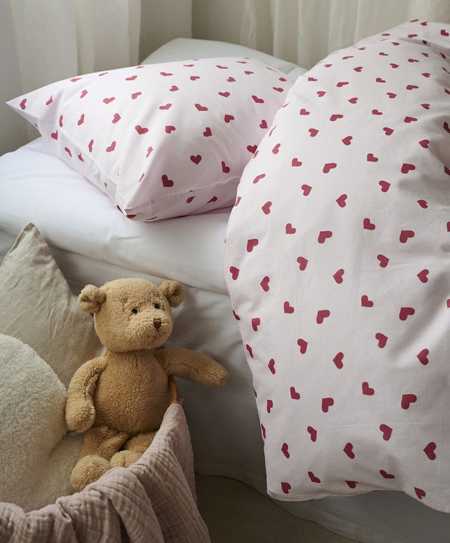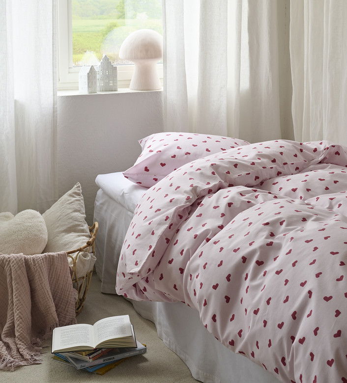 Hjärtrud bäddset från Borganäs of Sweden med charmigt hjärtmönster i rosa toner. Tillverkat av 100% OEKO-TEX certifierad bomull med 144 TC som är mjuk och behaglig mot huden. Påslakanet har praktiska hörnhål och örngottet kuvertöppning. Perfekt för att skapa en romantisk och ombonad atmosfär i sovrummet!