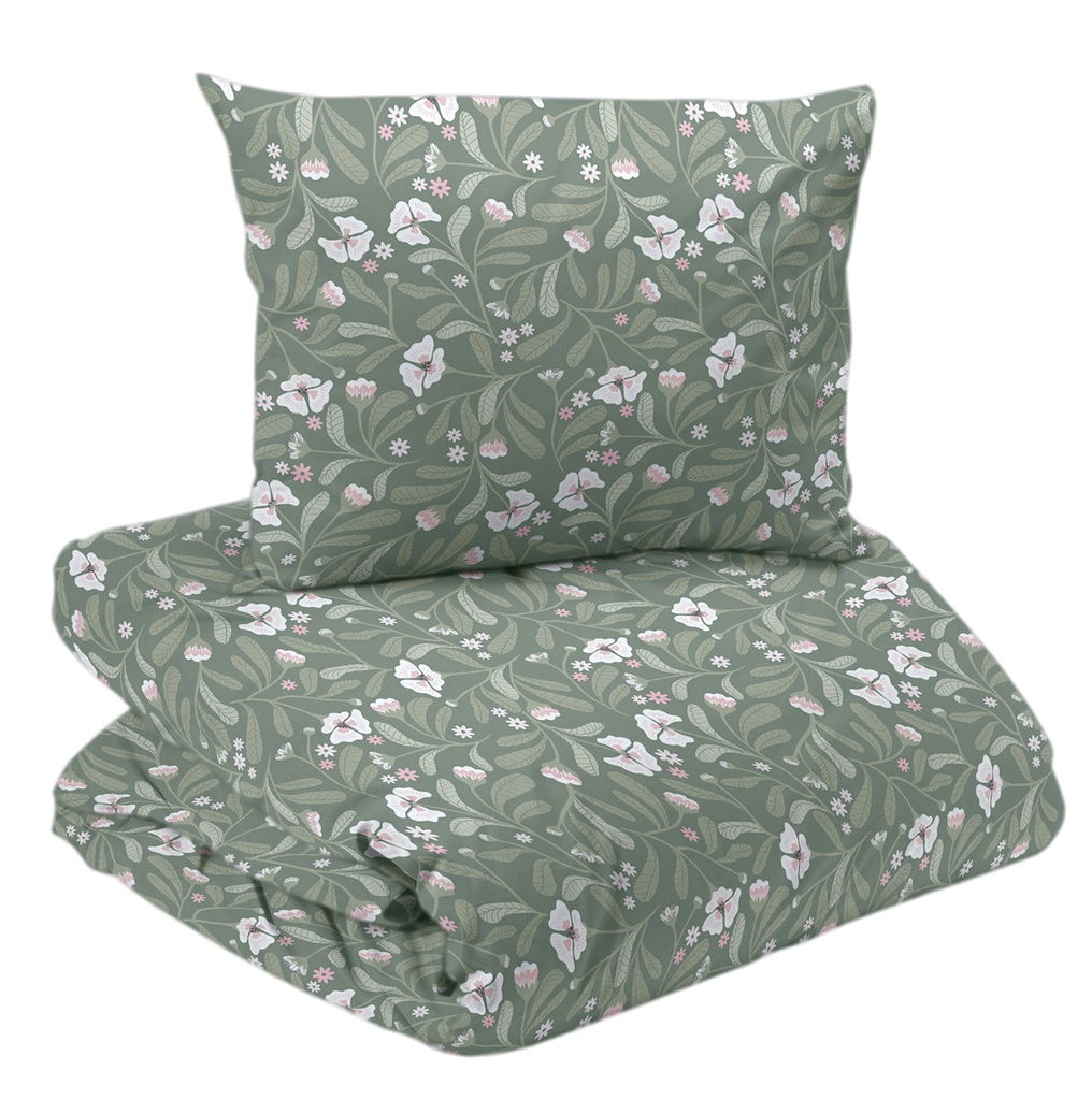 Lovis Grön Blommigt Bäddset Enkeltäcke 150x210 Redlunds