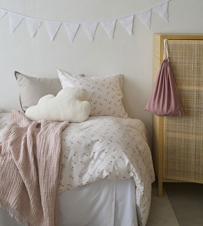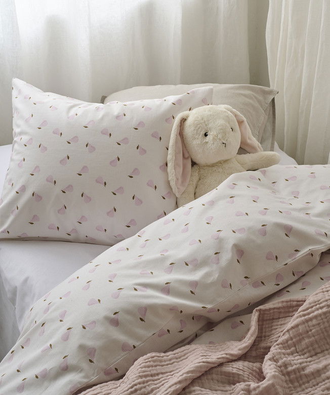 Charmigt bäddset från Borganäs of Sweden i mjuk bomull med ett lekfullt mönster av små päron i rosa nyanser. Ger sovrummet en fräsch och inbjudande känsla!