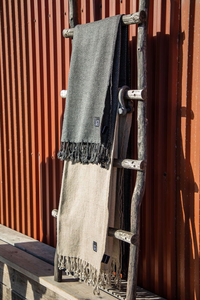 Pläden Kolstorp från Kosta Linnewäfveri är en elegant och behaglig pläd som kombinerar stil och funktion. Det geometriska mönstret i mörkgrått ger ett sofistikerat intryck, medan de dekorativa fransarna på kortsidorna adderar en charmig touch