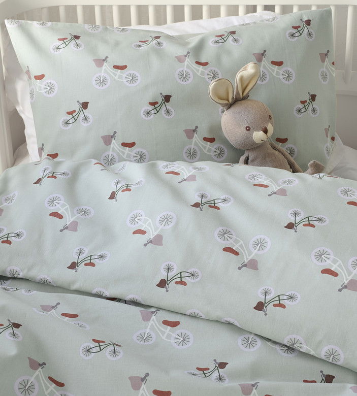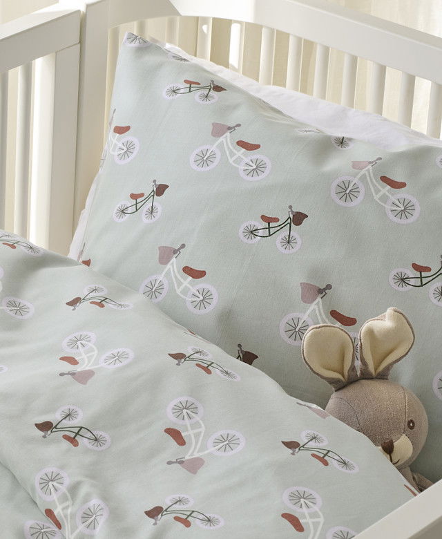 Ett tryggt och mjukt bäddset i 100 % bomull, särskilt anpassat för spjälsäng. Plingeling Grön har ett lekfullt cykelmönster på ljusgrön botten som skapar en glad och harmonisk atmosfär i barnrummet. En perfekt kombination av komfort, kvalitet och omtanke för de minsta.