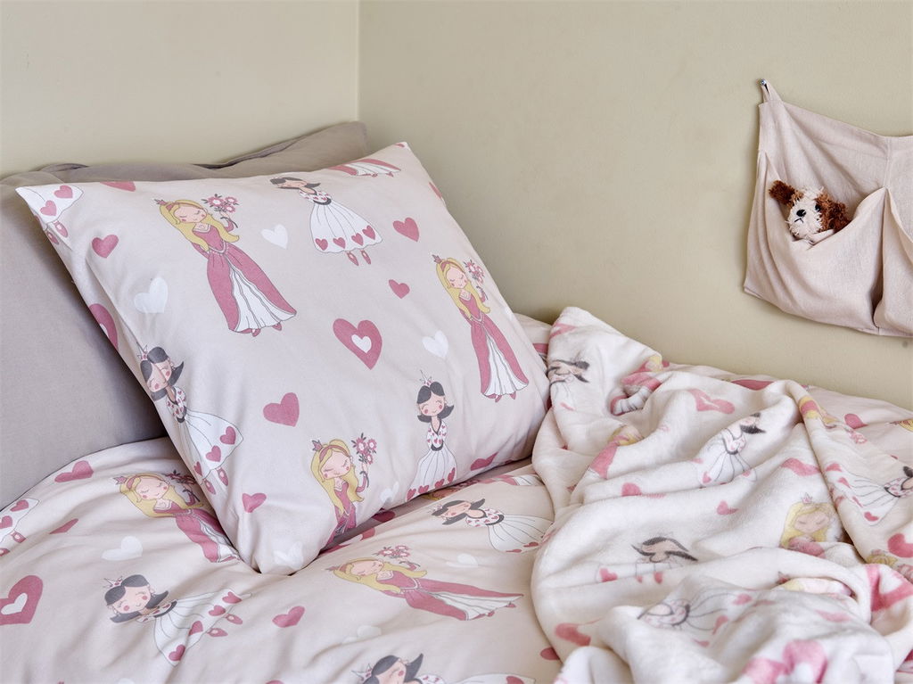 Låt ditt barn uppleva magin med vår Prinsessa Beige Pläd. Denna pläd har ett underbart motiv av prinsessor och hjärtan, perfekt för att skapa en fantasifull atmosfär i barnrummet. Designad av en svensk designer, kombinerar den stil och funktion. Pläden är inte bara vacker utan också praktisk och hållbar, tillverkad i 100% polyester för enkel skötsel. Dessutom är den OEKO-TEX® STANDARD 100 certifierad, vilket garanterar att den är fri från skadliga ämnen. Finns i matchande bäddset för en komplett look.