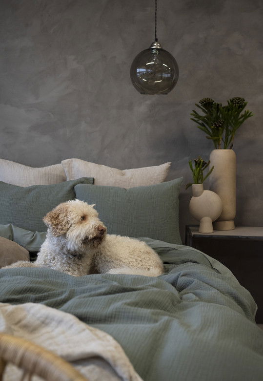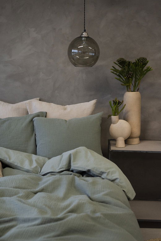 Ett skönt och stilrent påslakanset i 100% bomullspercale. Påslakanet och örngottet har en krinklad framsida och en slät baksida som en extra fin detalj. Percale kännetecknas av dess höga trådtäthet på över 200 TC, vilket ger en slät och hållbar struktur. Påslakanet har hörnhål och örngottet har en kuvertöppning.