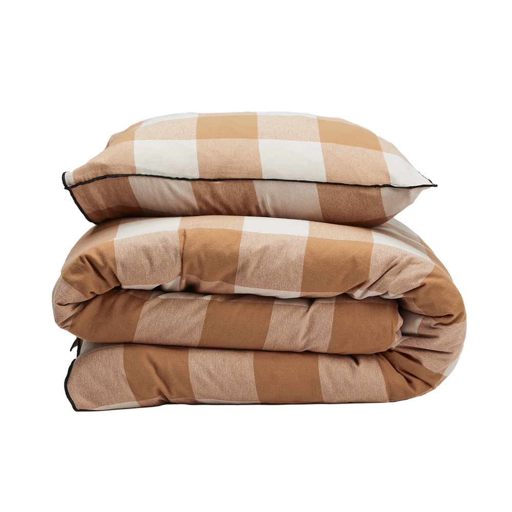 Mjukt och varmt flanellpåslakan i lejonfärgade terrakottarutor. Perfekt för kalla nätter med klassisk design och högkvalitativ bomull.