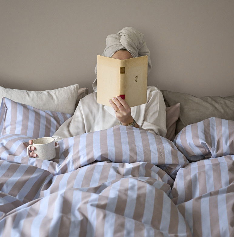 Sanna Multi Randigt Microfiber Bäddset Enkeltäcke 150x210 Borganäs of Sweden
