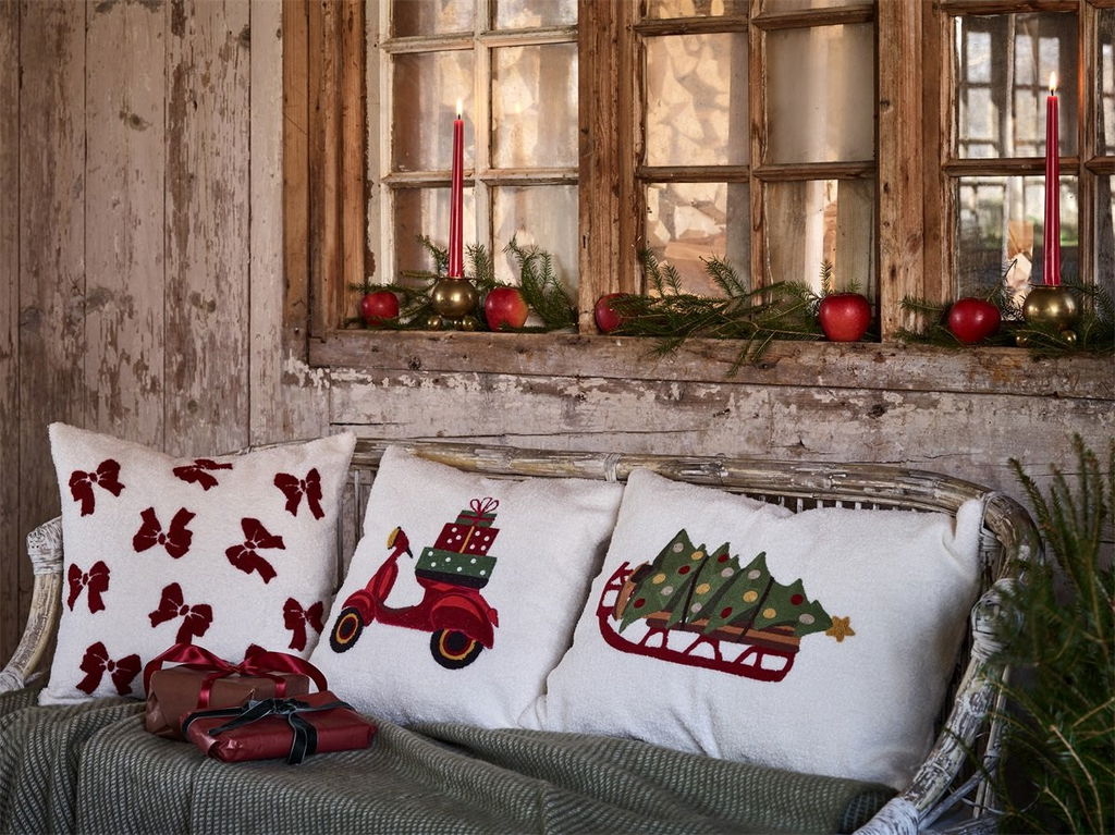 Ett mjukt och stilrent kuddfodral i teddy med en charmig broderad scooter med julklappar på framsidan. Perfekt för att ge ditt hem en personlig och lekfull touch med dolda dragkedjor för en sömlös look. OEKO-TEX® certifierad för din trygghet.