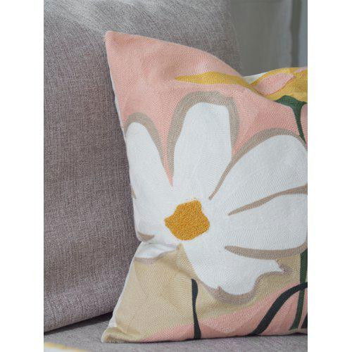 Förvandla soffan eller sängen till ett konstgalleri med detta exklusiva kuddfodral med broderad design. Det tidlösa blommotivet i varma nyanser av rosa, terrakotta, senapsgult och vitt skapar en sofistikerad och modern känsla. Den vackra broderingen på framsidan ger kuddfodralet en taktil dimension och lyxig känsla som höjer hela rummets atmosfär.