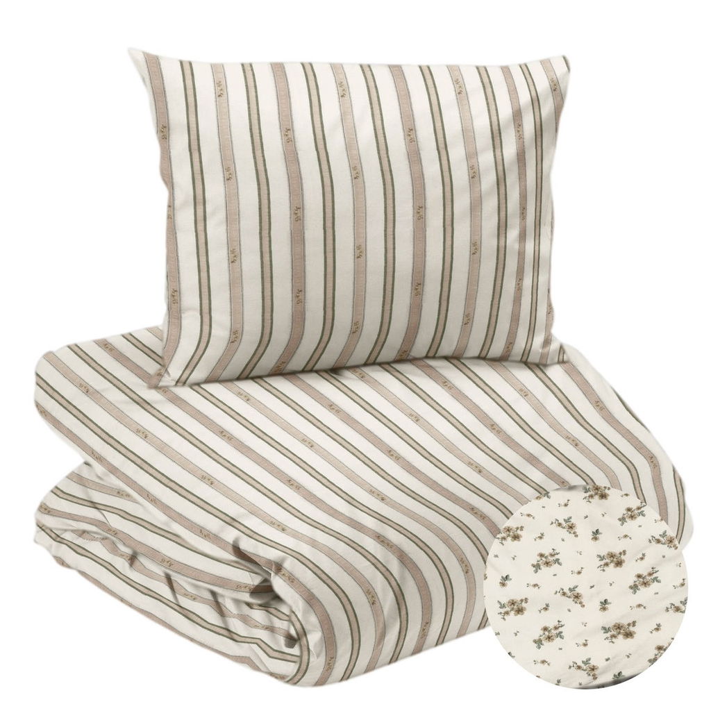Stina bäddset är perfekt för dig som uppskattar en sval och inbjudande känsla i sovrummet. Det vackra blommönstret i mullvad tillsammans med de eleganta ränderna skapar en sofistikerad lantlig stil. Tillverkat av högkvalitativ bomull, erbjuder detta bäddset en behaglig bäckebölja textur som känns skön mot huden. Med OEKO-TEX STANDARD 100 certifiering kan du vara säker på att det är fritt från skadliga ämnen. De diskreta färgerna och den stilrena designen gör det enkelt att matcha med annan inredning.