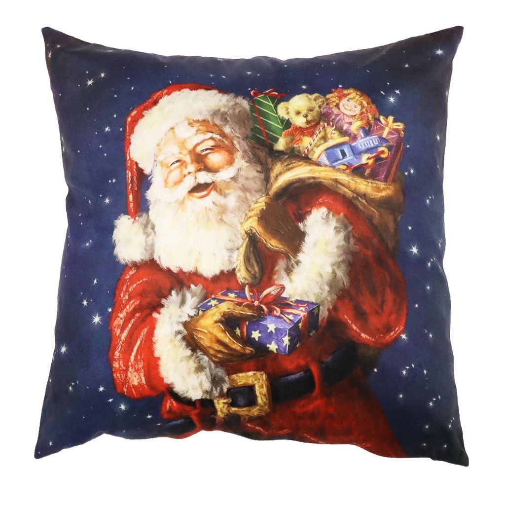 Skapa en stämningsfull julkänsla i ditt hem med detta underbara kuddfodral från Redlunds. Det färgglada trycket av en leende tomte som bär julklappar är perfekt för att förhöja julstämningen i vilket rum som helst. Den mjuka sammetsytan ger en lyxig känsla, medan den enfärgade vita baksidan erbjuder en stilren och lugn kontrast. Kuddfodralet har en dold dragkedja nertill för ett smidigt och elegant utseende. Certifierad enligt OEKO-TEX® STANDARD 100 för din trygghet och komfort.